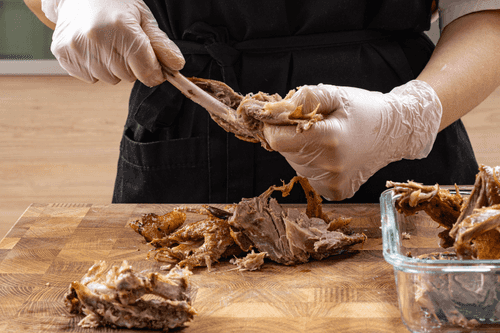 Утиное мясо тщательно снять с костей и мелко нарезать.