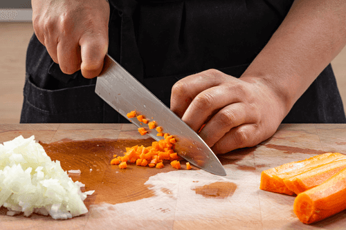 Морковь и лук очистить, нарезать мелкими кубиками.