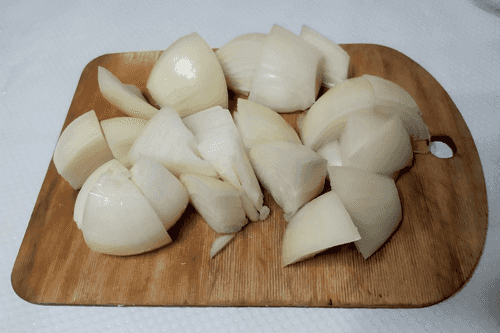 Репчатый лук очистить и нарезать произвольно.