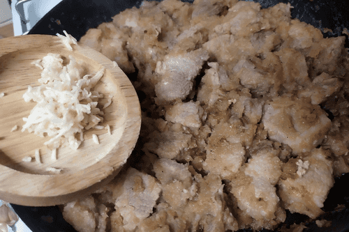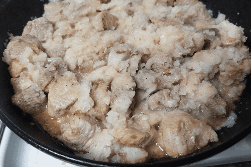 Свинина тушенная с луком на картофельном пюре