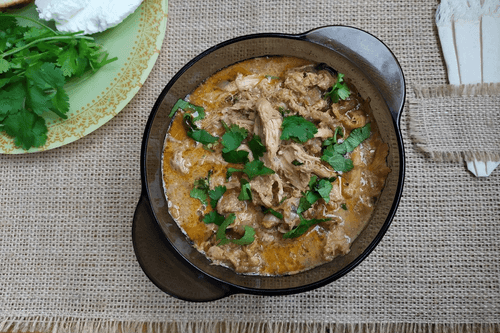 Куриное мясо отделить от кожи и костей и порвать руками на небольшие куски.