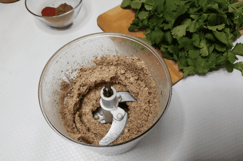 Грецкие орехи измельчить в блендере.