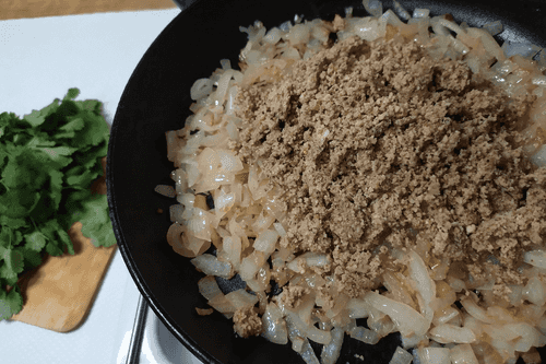 Добавить к луку измельченные орехи.