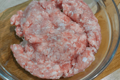 Выложить небольшое количество фарша на лист.