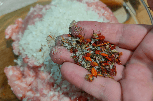 Завернуть аккуратно фарш в лист и чуть прокатать, чтобы все прилипло.