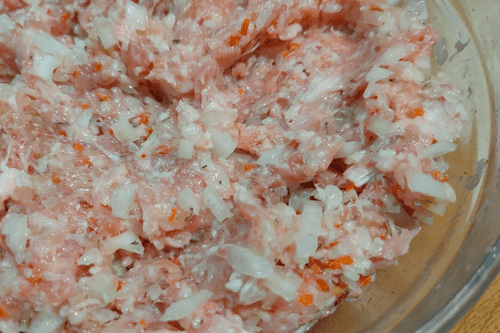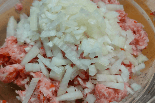 Добавить лук к фаршу.