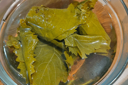 Виноградные листья достать из рассола.