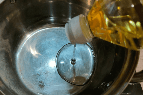 Далее в кастрюлю налить немного растительного масла.