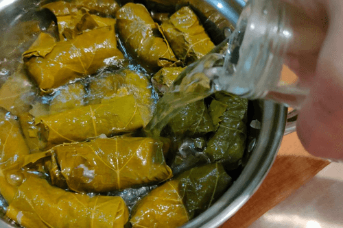 Готовить долму на малом огне до готовности фарша.