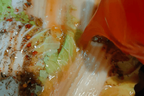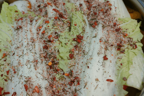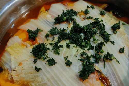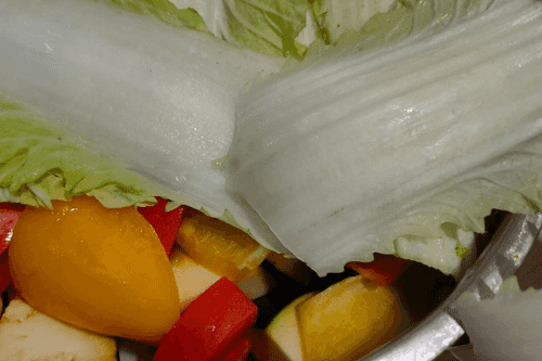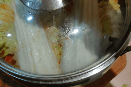 Далее взять листья капусты и накрыть ими курицу с овощами.