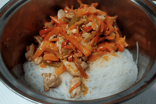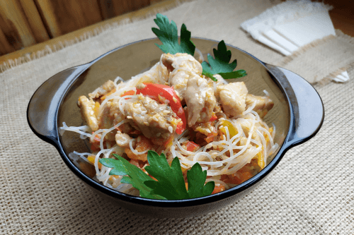 Фунчоза с курицей и овощами — это яркое и ароматное блюдо паназиатской кухни, покоряющее своей нежностью и насыщенным вкусом. Его история уходит корнями в традиции восточных гастрономических изысков, где легкость стеклянной лапши идеально сочетается с сочным куриным филе и хрустящими овощами. Фунчоза, обладающая тонким нейтральным вкусом, прекрасно впитывает насыщенный соевый соус с пикантной ноткой чеснока, а слегка обжаренный кунжут добавляет приятный ореховый оттенок. Блюдо универсально — его подают как теплым, так и холодным, оно подойдет и для уютного ужина, и для праздничного стола. Это гармония текстур и вкусов, в которой свежесть овощей соединяется с глубоким азиатским характером. Простота приготовления делает его доступным даже для новичков в кулинарии.