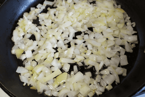 Обжарить мелко нарезанный репчатый лук на растительном масле до золотистого цвета.