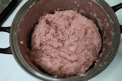 Перемешать фарш до однородной массы.
