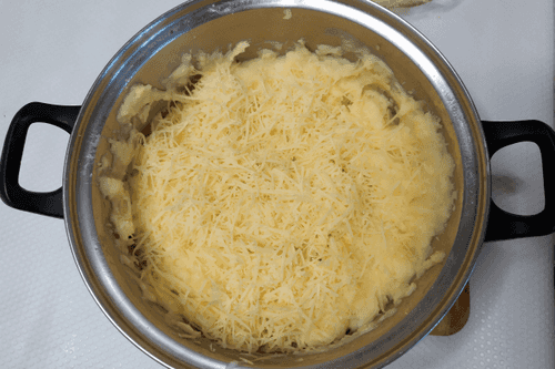 Размешать пюре с сыром до однородной массы.