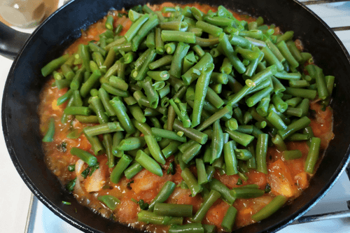Стручковая фасоль с помидорами