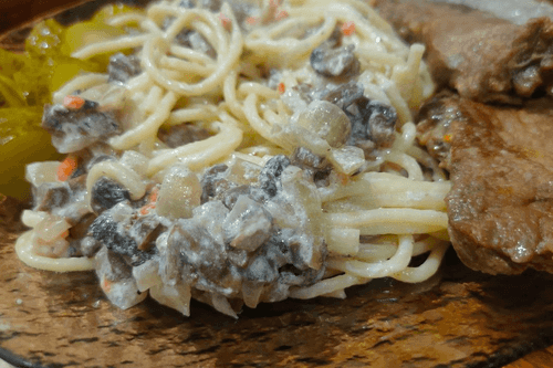 Спагетти со сливочно-грибным соусом – это изысканное блюдо итальянской кухни, сочетающее нежную текстуру пасты аль денте с насыщенным кремовым соусом из шампиньонов. Грибы, пропитанные ароматами пассерованного лука и моркови, придают соусу глубину вкуса, а сливки делают его бархатистым и обволакивающим. Легкая пикантность травяной соли оттеняет естественную сладость ингредиентов, создавая гармонию вкусов. Это блюдо идеально подходит как для уютных семейных ужинов, так и для романтического ужина при свечах. Спагетти с таким соусом можно дополнить тертым пармезаном или свежей зеленью для еще большей выразительности. Наслаждайтесь каждым кусочком, словно путешествуя по солнечным улочкам Италии.