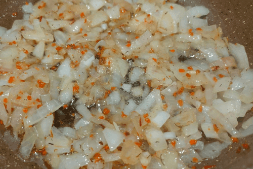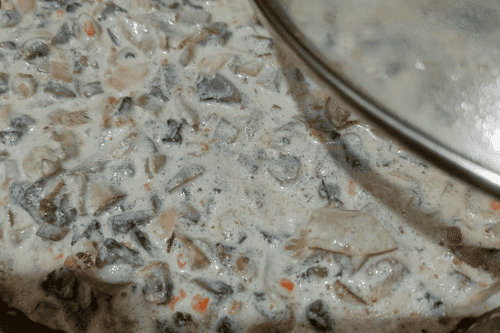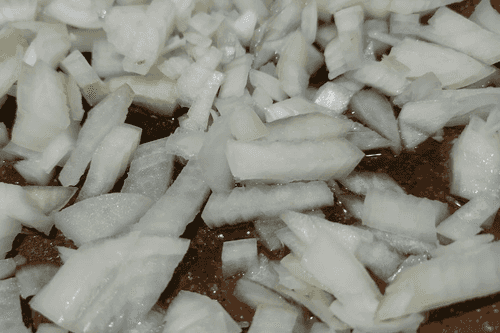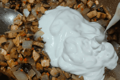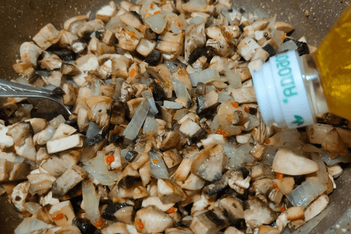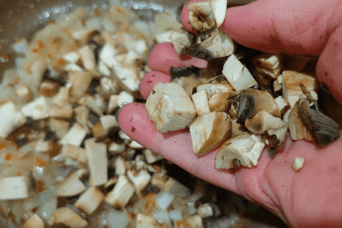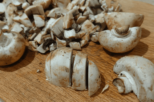 Тем временем нарезать шампиньоны на мелкие кусочки.