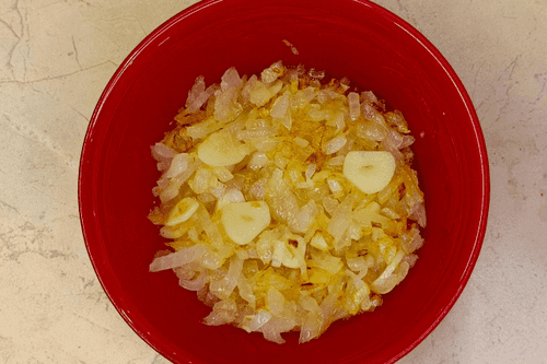 Пассеровать лук до мягкости, добавить чеснок, обжаривать еще 1–2 минуты, переложить в миску.