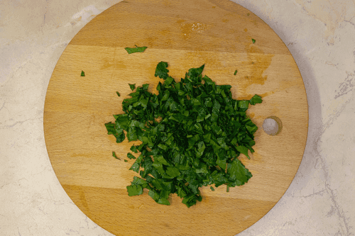 Петрушку мелко нарезать.
