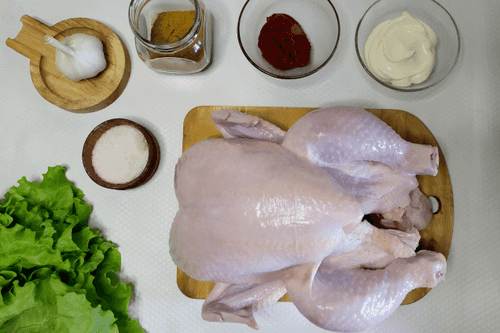 Куриную тушку промыть и обсушить бумажным полотенцем.