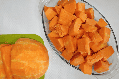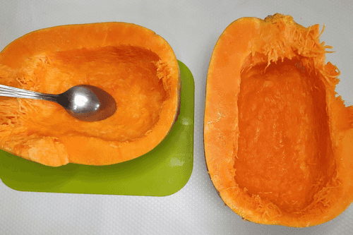 Тыкву помыть, разрезать и удалить семена.