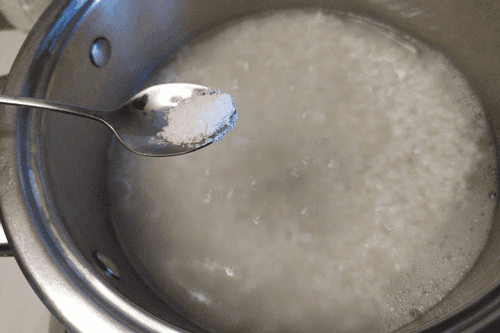 Поставить на медленный огонь, в процессе варки добавить соль.