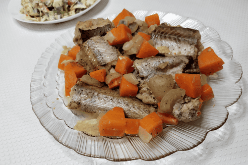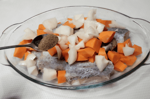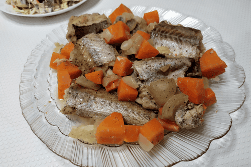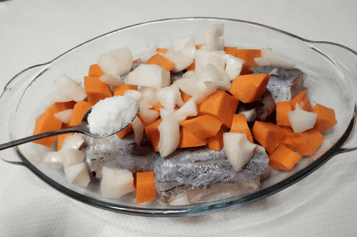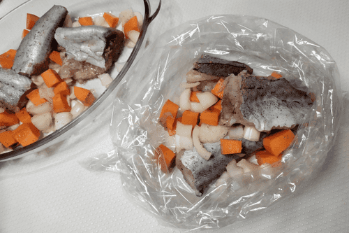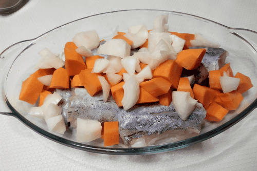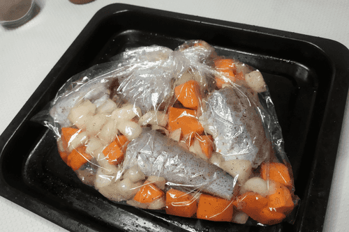 Минтай с овощами в рукаве — это простое, но изысканное блюдо европейской кухни. Запекание в рукаве позволяет сохранить сочность рыбы и насыщенность вкуса овощей, делая блюдо ароматным и нежным. Минтай, обладающий мягким вкусом, прекрасно сочетается со сладостью моркови и пикантностью лука, а добавление соли и черного перца подчеркивает естественную гармонию ингредиентов. Этот метод приготовления распространен в европейских семьях благодаря своей легкости и удобству: не требуется дополнительного масла, а вкус получается насыщенным и натуральным. Блюдо идеально подходит для здорового питания и прекрасно сочетается с легкими гарнирами, такими как рис или картофельное пюре. Подавая его горячим, можно насладиться нежной текстурой рыбы и богатым ароматом запеченных овощей.