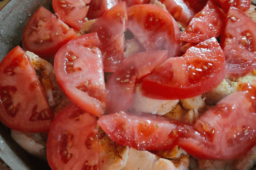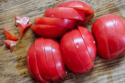 Пока рыба готовится, помидоры нарезать ломтиками.