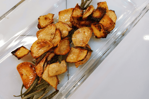 В форму для запекания переложить имбирь, чеснок и розмарин.