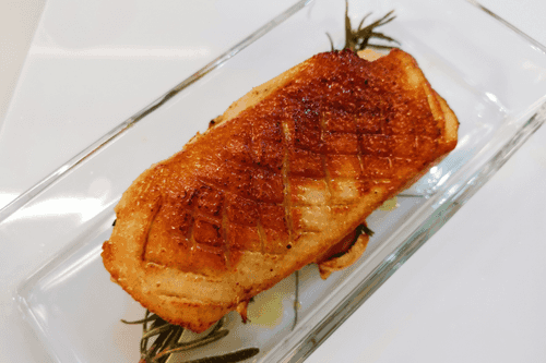 Утиная грудка с хрустящей корочкой — истинное произведение кулинарного искусства, сочетающее изысканный вкус и аромат. Этот рецепт, вдохновленный европейскими гастрономическими традициями, сочетает нежное мясо утки с глубокими пряными нотами карри, свежестью розмарина и пикантностью имбиря. Запечённая до совершенства, грудка приобретает золотистую хрустящую корочку, а мягкое и сочное филе внутри раскрывает богатый вкус. Такой способ приготовления позволяет сохранить естественную сочность утиного мяса, наполняя его ароматами специй и трав. Блюдо идеально подходит для торжественного ужина или романтического вечера, а его гармоничное сочетание вкусов делает его настоящим кулинарным шедевром.
