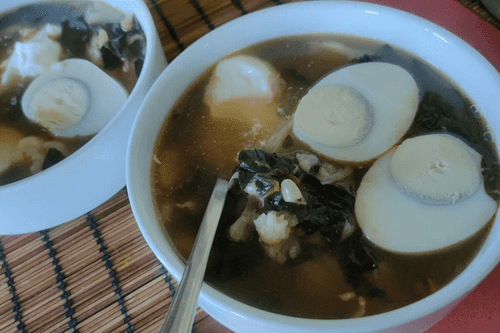 Разложить порционно и добавить вареное яйцо.