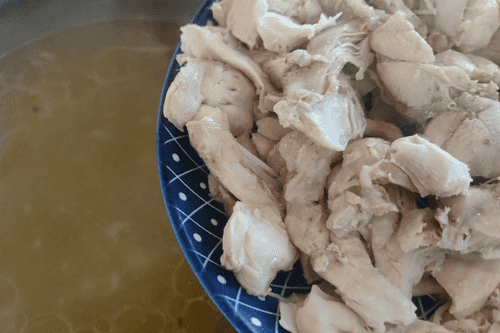 Вернуть курицу в бульон.
