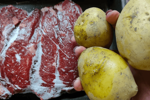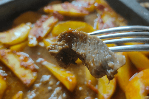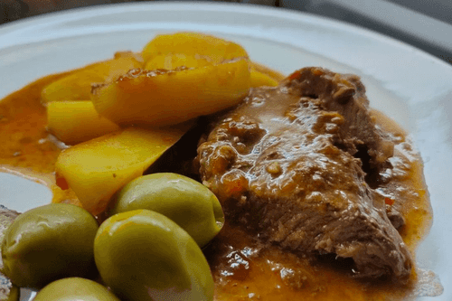 Говядина с картофелем тушенная в остром томатном соусе