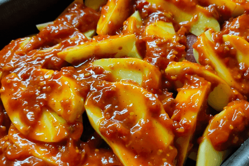 Говядина с картофелем, тушенная в остром томатном соусе, — это сытное и ароматное блюдо, которое объединяет простоту приготовления с насыщенным вкусом. Такое сочетание мяса и картофеля популярно во многих кухнях мира, где его ценят за питательность и гармоничное объединение текстур. Говядина, медленно пропитываясь насыщенным томатным соусом, приобретает мягкость и пикантные нотки, а картофель становится нежным, впитывая все ароматы. Острая нотка соуса придает блюду характер и делает его особенно согревающим, идеально подходящим для холодных вечеров. Это блюдо можно подавать как самостоятельное или дополнять свежими овощами и зеленью, чтобы смягчить остроту. Оно прекрасно сочетается с хлебом, который можно макать в аппетитный соус, наслаждаясь каждым кусочком.