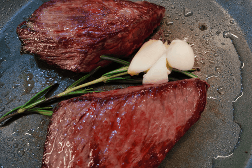 Стейку дать отдохнуть при комнатной температуре 5–7 минут.
