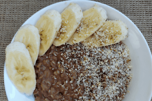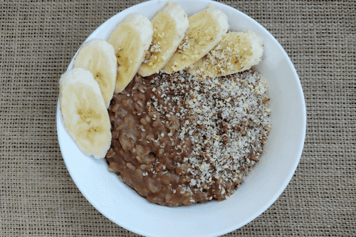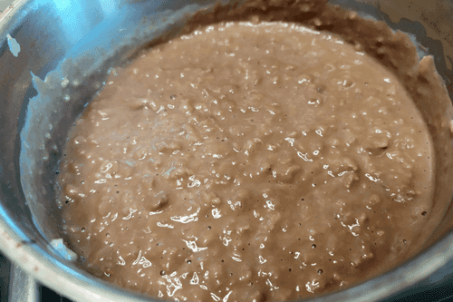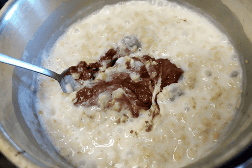 Добавить шоколадно-банановую массу в почти готовую овсяную кашу, размешать.