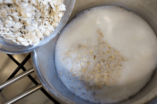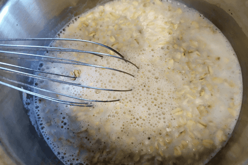 Всыпать 0,5 стакана овсяных хлопьев долгой варки.
