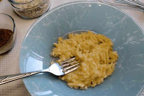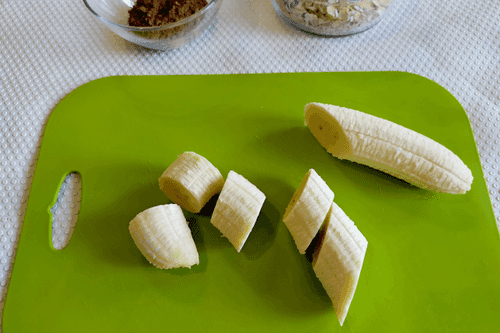 Спелый банан разрезать на небольшие кусочки, оставив примерно треть банана для украшения.