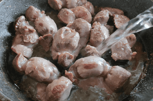 Подготовить желудочки. Промыть их и очистить от пленок и внутренностей (если есть).