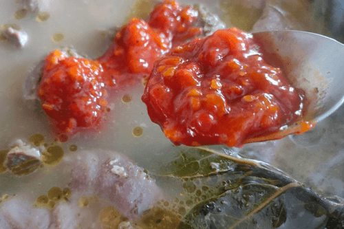 Когда желудочки будут почти готовы, добавить томатный соус.