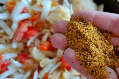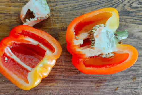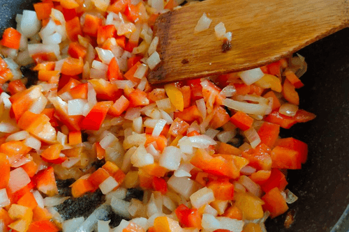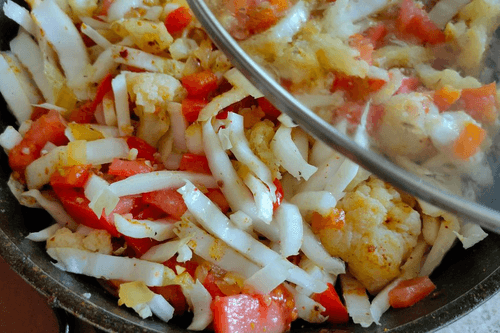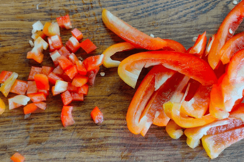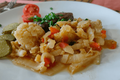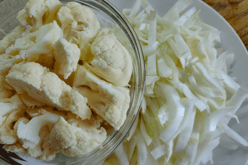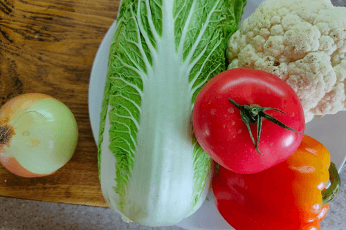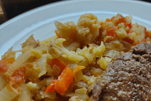 Тушеная цветная и пекинская капуста со сладким перцем и помидором