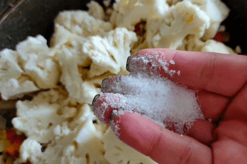 Посолить и готовить все вместе под крышкой до полуготовности капусты.