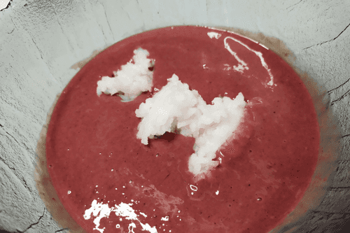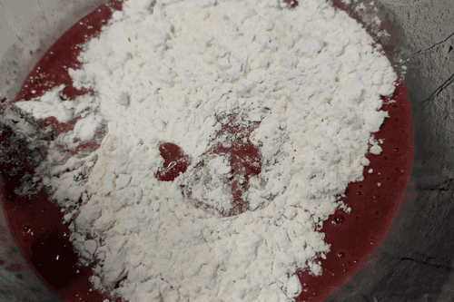 Добавить 3 столовые ложки муки с горкой. Размешать венчиком до однородной массы, дать массе постоять 5–10 минут.