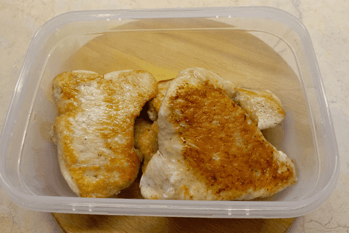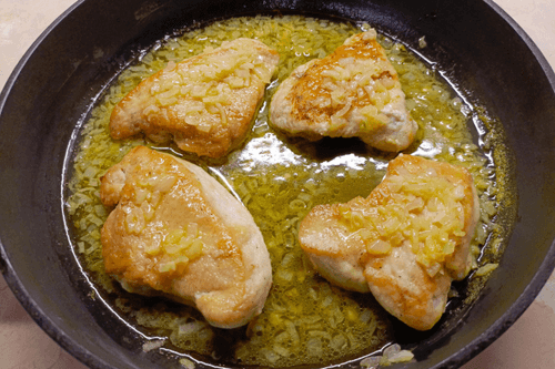 Обжарить их в растительном масле по 2 минуты с каждой стороны. Отложить мясо в миску.