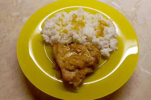 Подать с вареным рисом.