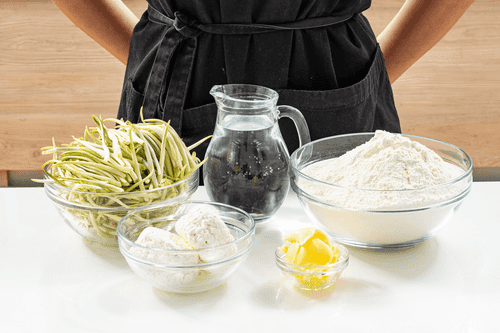 Подготовить все ингредиенты. Черемшу промыть и очистить.