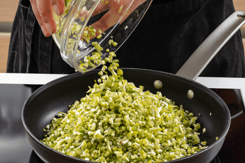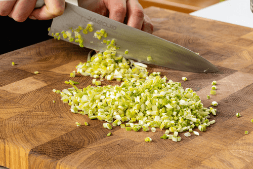 Мелко нарезать черемшу.