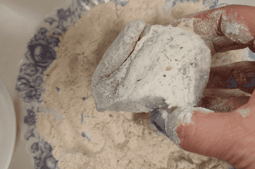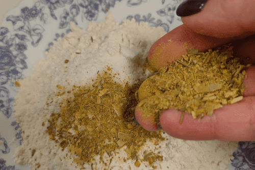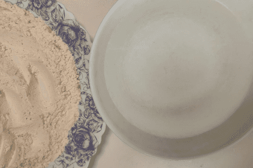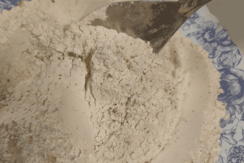 Подготовить муку, высыпать в тарелку.