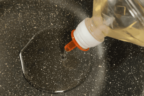 В сковороду налить масло и нагреть.