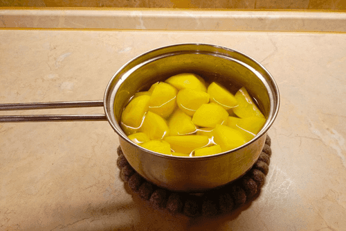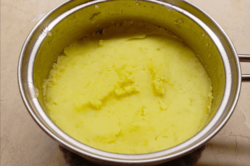 Воду слить, картофель растолочь.